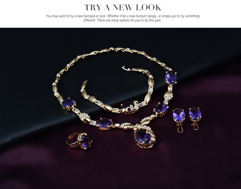 Gold Plated Jewelry Set with Red Corundum – Necklace Earrings Ring for Women